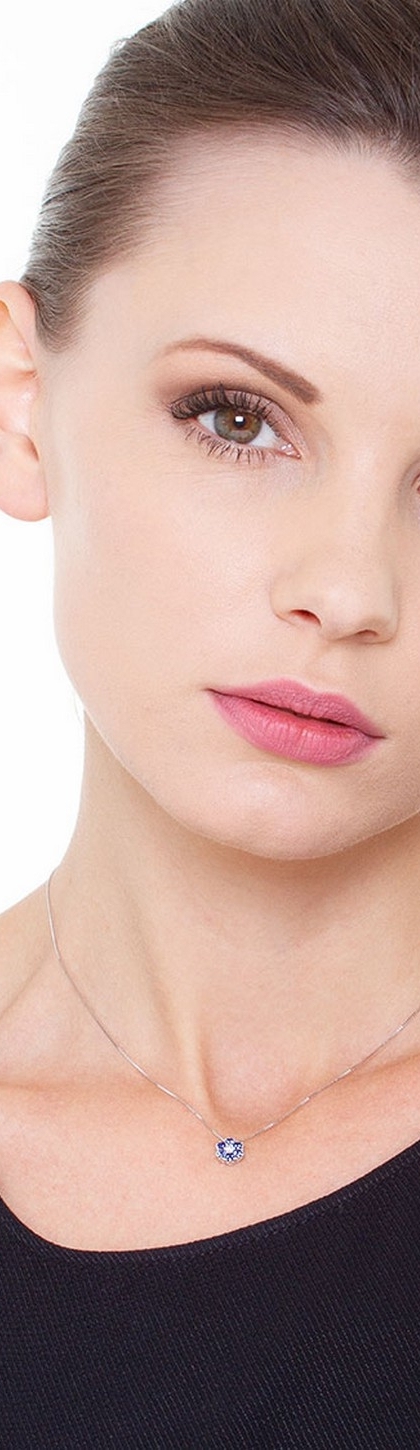 Collier en Or Blanc 18k avec Diamant et Saphirs Bleus