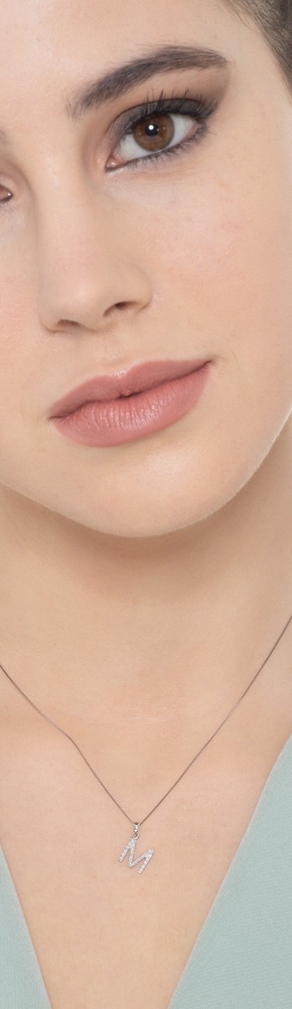 Collier en or blanc 18k avec lettre M sertie de diamants