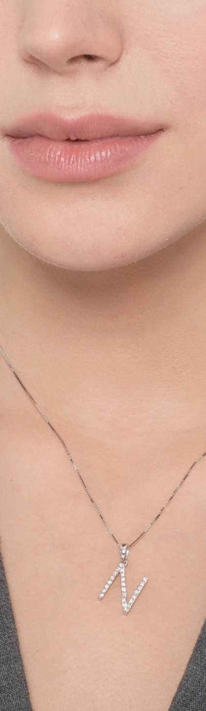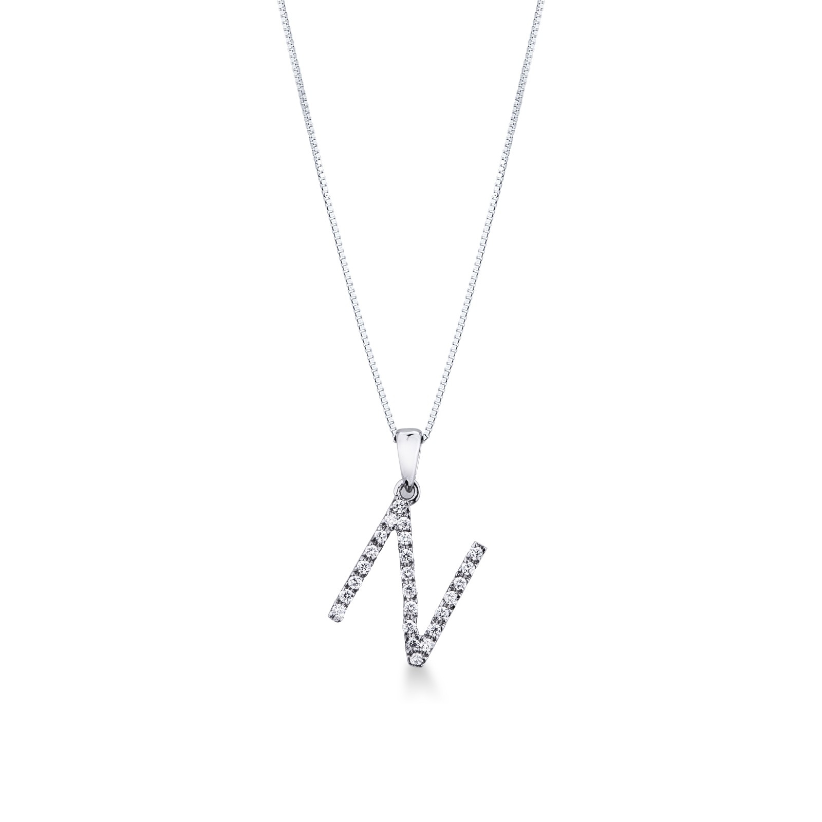 Collier en Or Blanc 18k avec Lettre N et Diamants