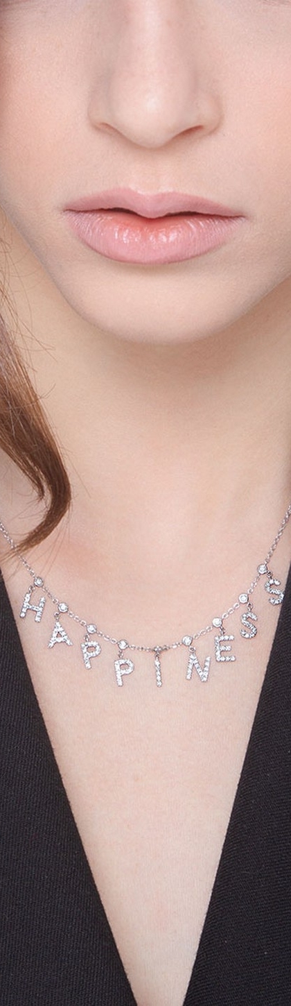 Collier en Or Blanc 18k avec Mot HAPPINESS en Diamants