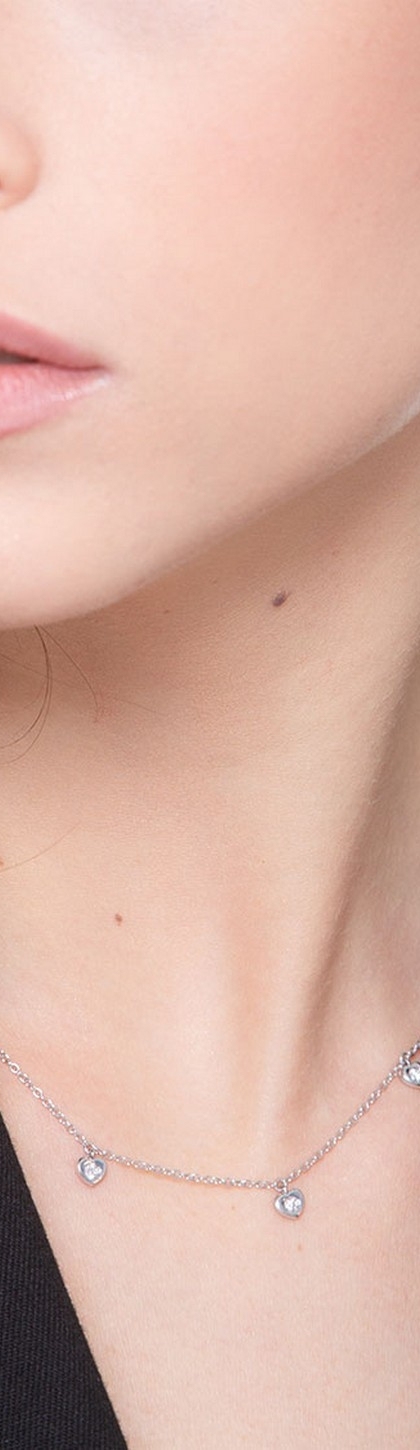 Collier en or blanc 18k avec neuf pendentifs en forme de cœur en diamants