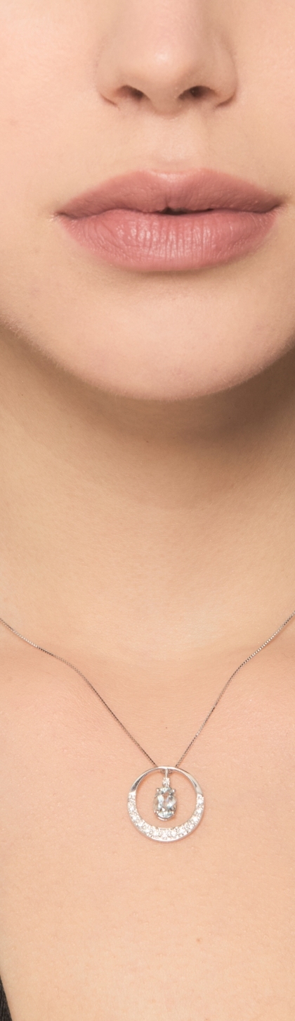 Collier en or blanc 18k avec pendentif aigue-marine ovale et diamants