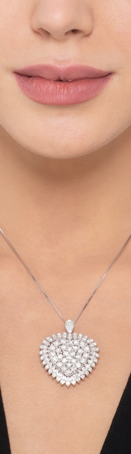 Collier en or blanc 18k avec pendentif coeur en diamants
