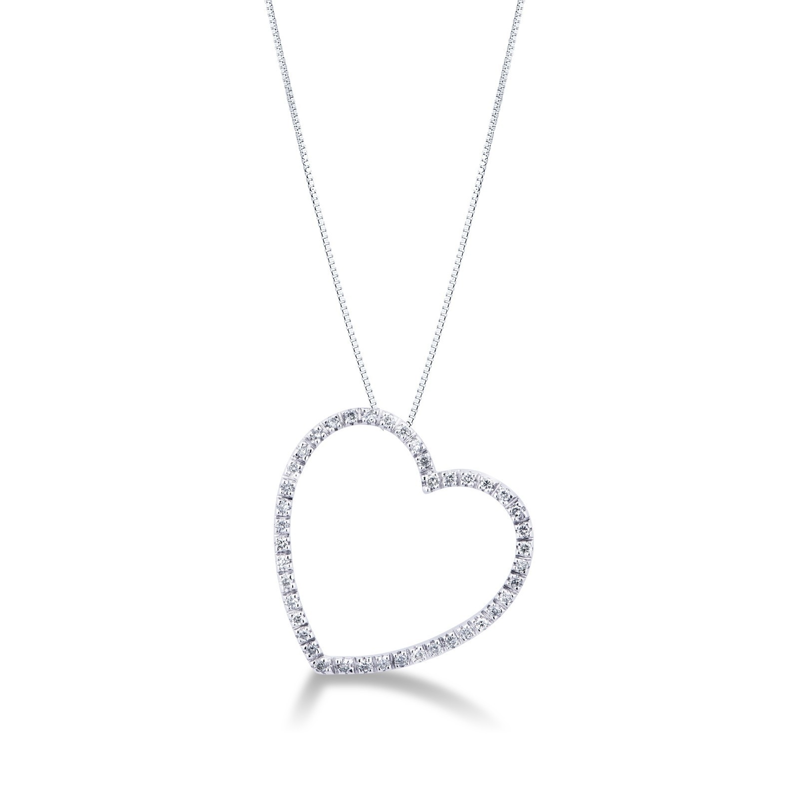 Collier en or blanc 18k avec pendentif cœur serti de diamants