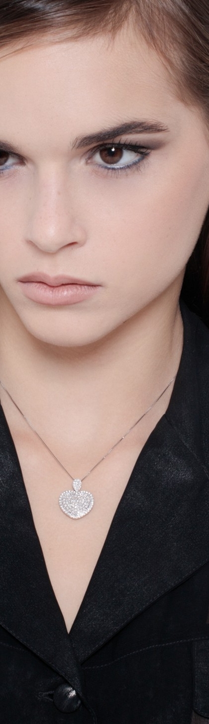 Collier en or blanc 18k avec pendentif en forme de cœur en diamant 0.78 ct