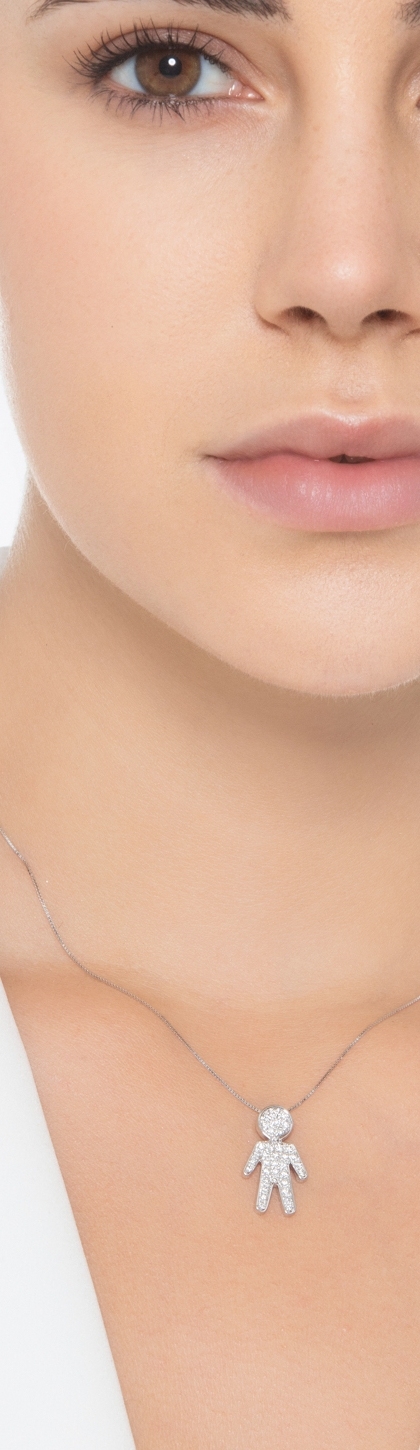 Collier en or blanc 18k avec pendentif garçon en diamants