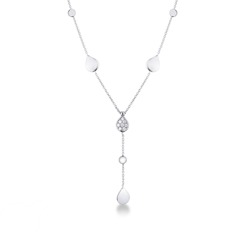 Collier en Or Blanc 18k avec Pendentif Goutte et Diamants