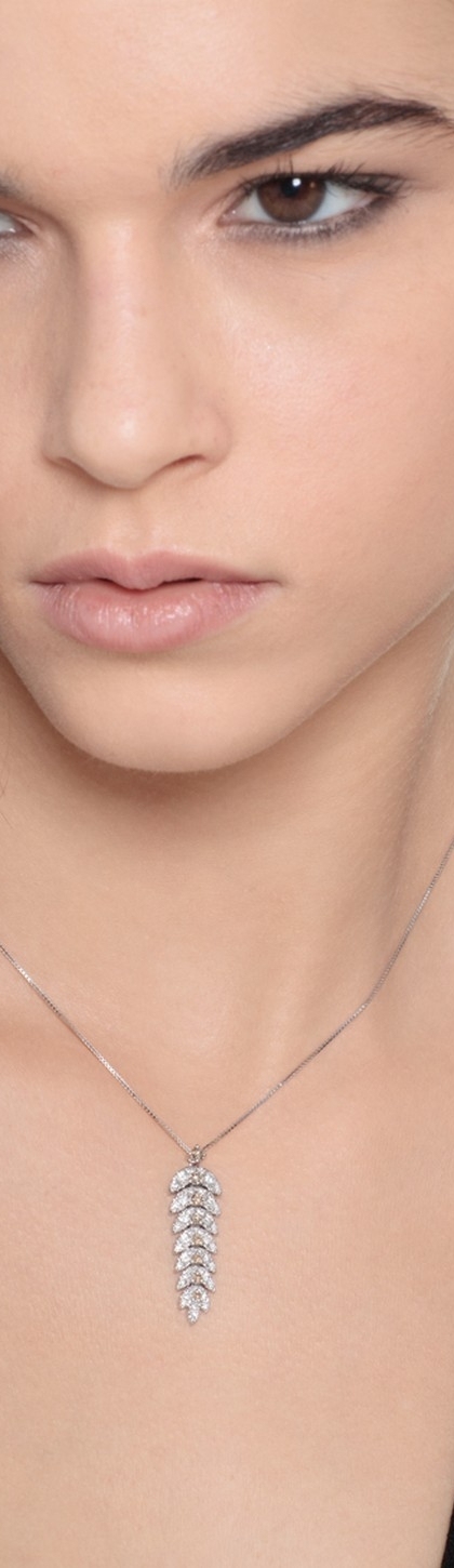 Collier en Or Blanc 18k avec Pendentif Plume en Diamants Blancs et Bruns