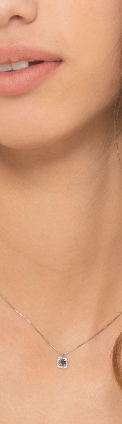 Collier en or blanc 18k avec pendentif saphir bleu et diamants