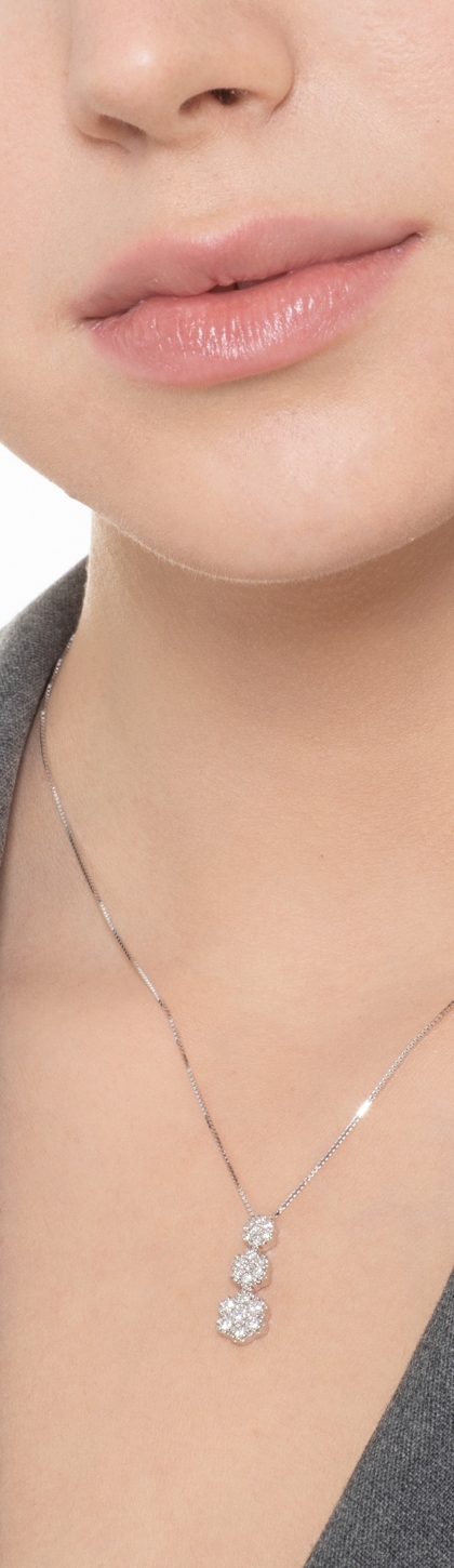 Collier en or blanc 18k avec pendentif trilogy fleur en diamants