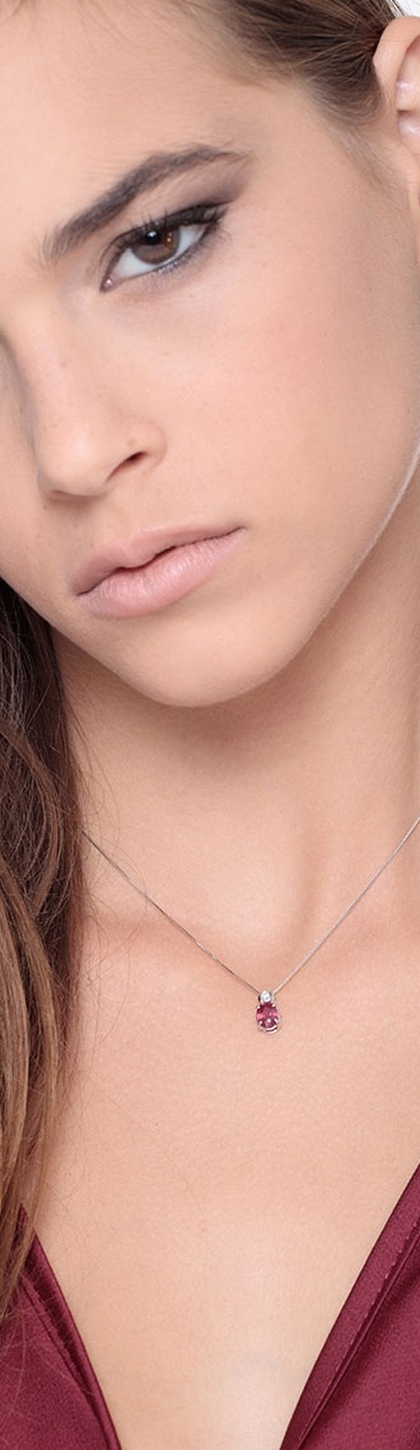 Collier en or blanc 18k avec rubis 6x4 mm et diamant