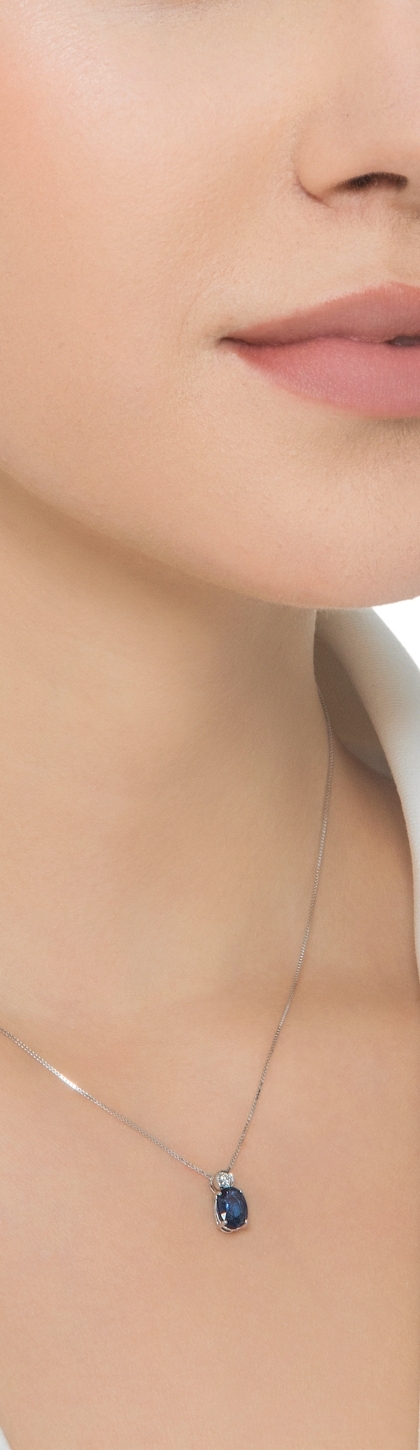 Collier en or blanc 18k avec saphir bleu central