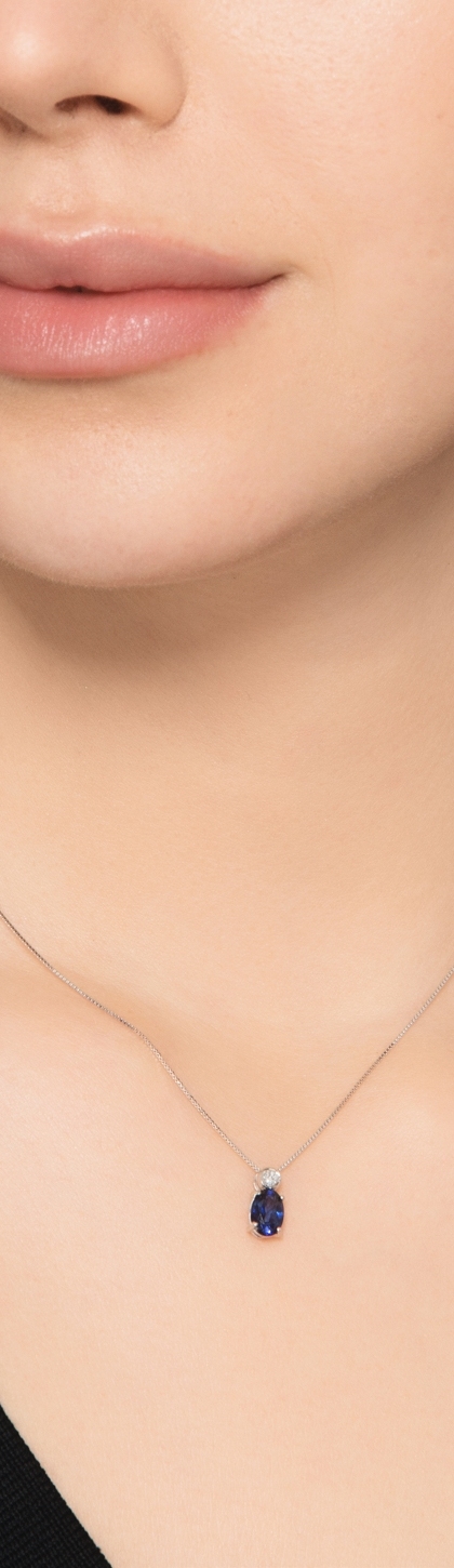Collier en or blanc 18k avec saphir bleu central