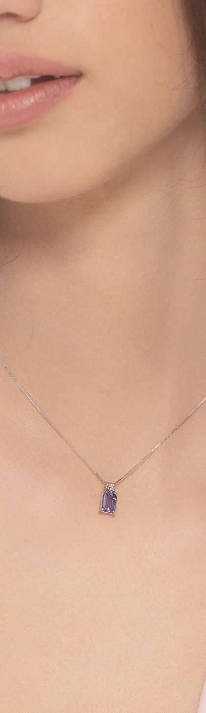 Collier en or blanc 18k avec tanzanite rectangulaire et diamant