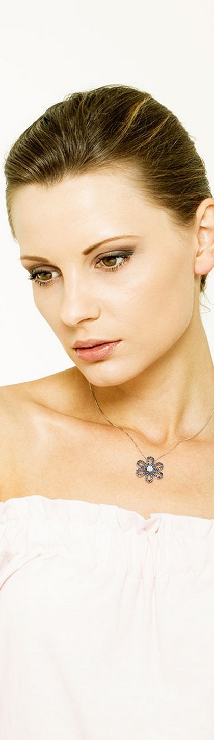 Collier en or blanc 750 avec fleur de saphirs bleus et diamants