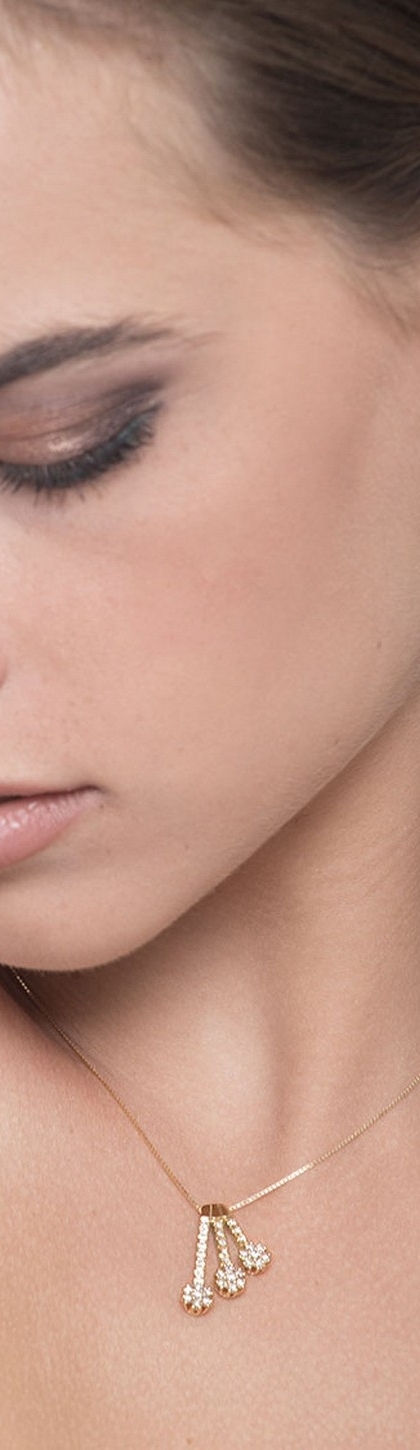 Collier en or jaune 18k avec diamants sur trois fleurs en degrade