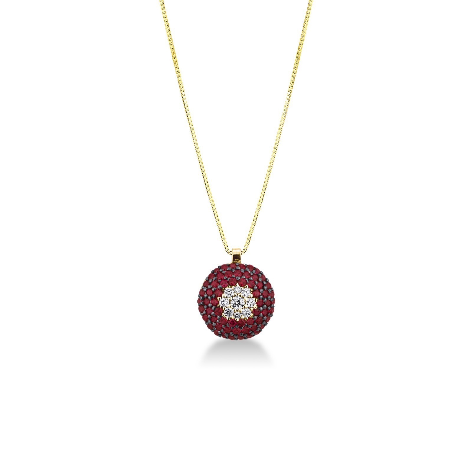 Collier en Or Jaune 18k avec Pavé de Rubis et Diamants