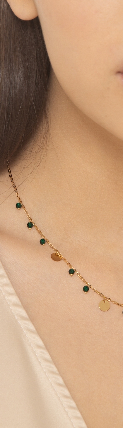 Collier en or jaune 18k avec pendentif vertes