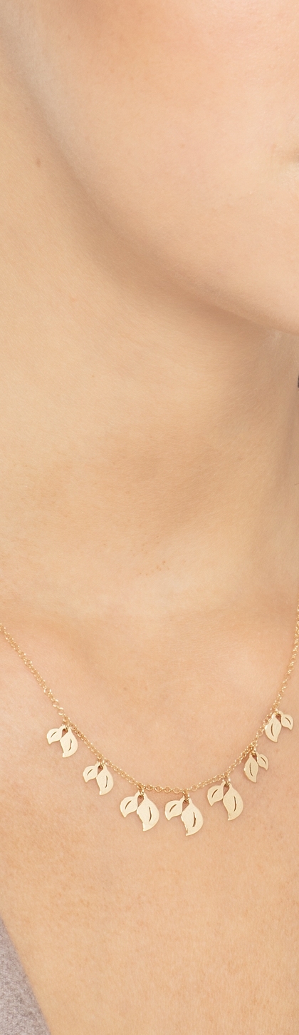 Collier en or jaune 18k avec sept charms en forme de feuille