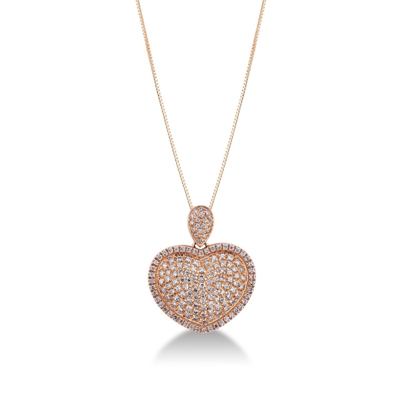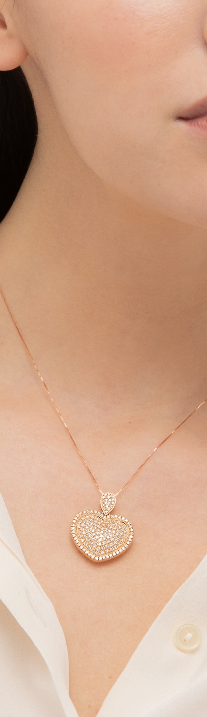 Collier en or rose 18k avec pendentif coeur et diamants