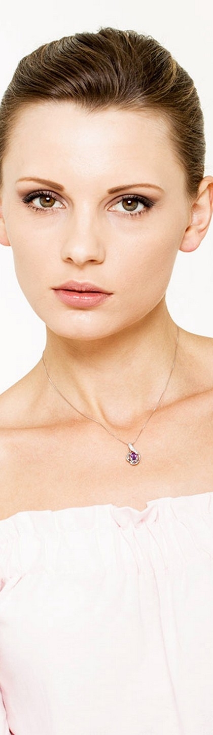 Collier Femme Améthyste Ovale & Diamants Brillants Or Blanc 18k