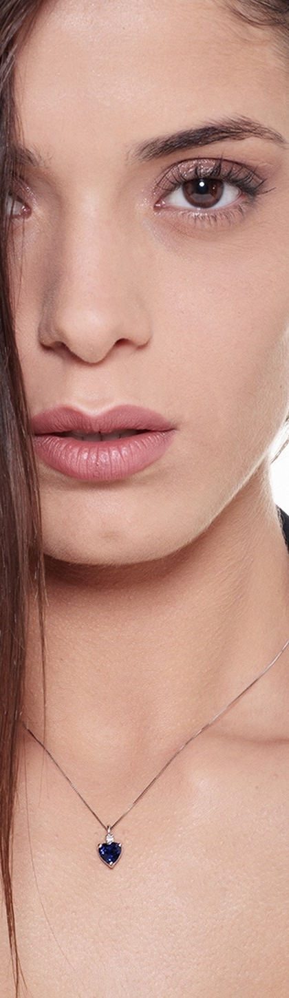 Collier femme en or blanc 18 carats serti d’un saphir bleu
