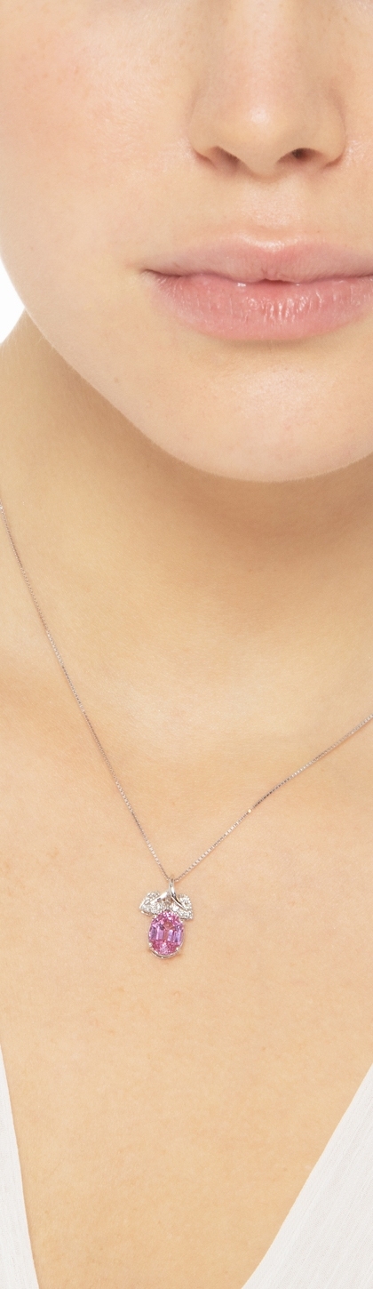 Collier femme en or blanc 18k avec pendentif saphir rose et diamants