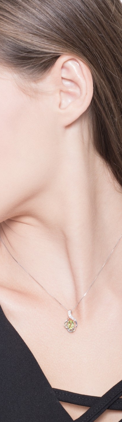 Collier femme en or blanc 18k avec péridot et diamants