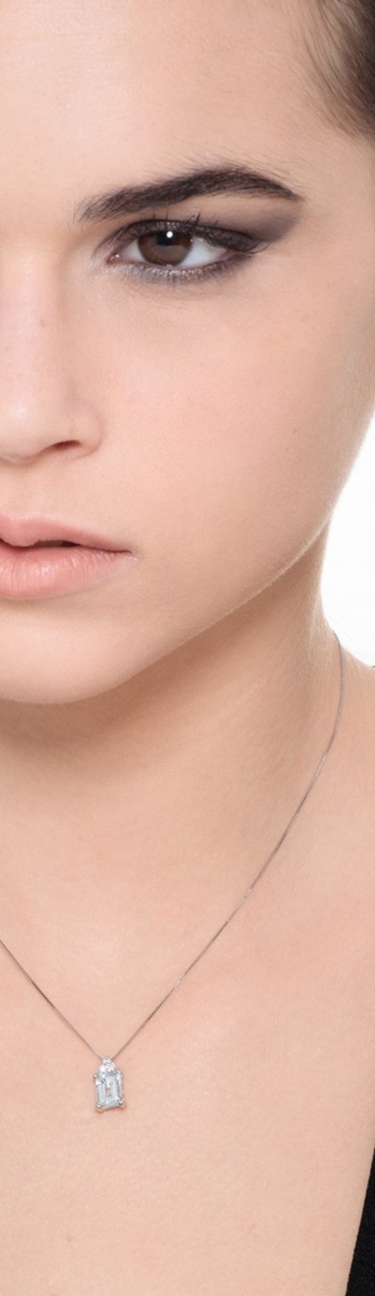 Collier femme or blanc 18k avec aigue-marine et diamants taille émeraude