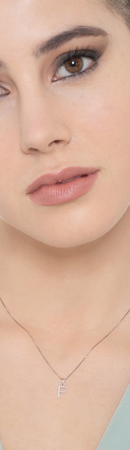 Collier lettre F en or blanc 18k avec pendentif