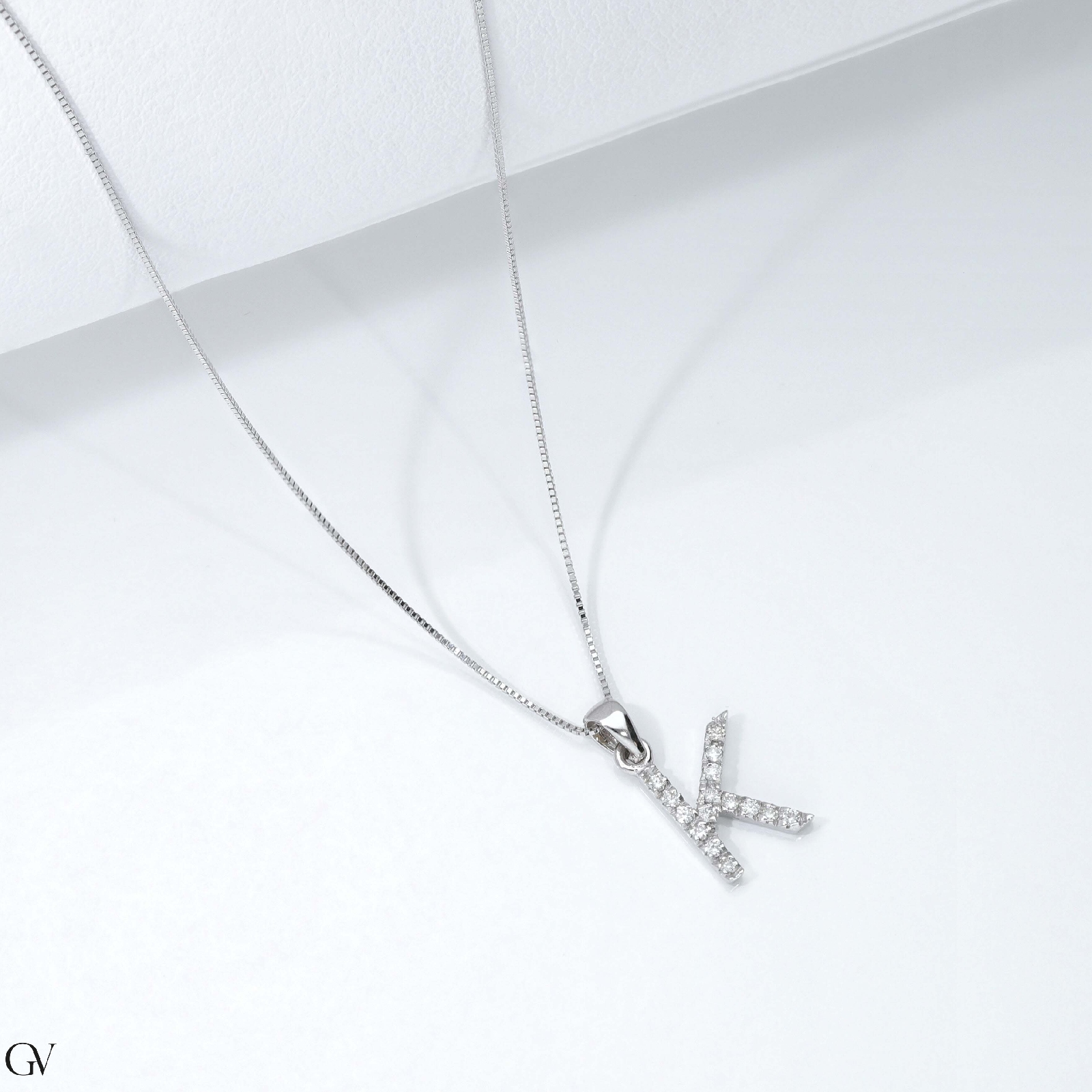 Collier en or blanc 18k avec pendentif lettre K de 0,95 cm serti de diamants taille brillant couleur H pureté VS. Un bijou raffiné et lumineux, symbole d’élégance et de style personnel unique.