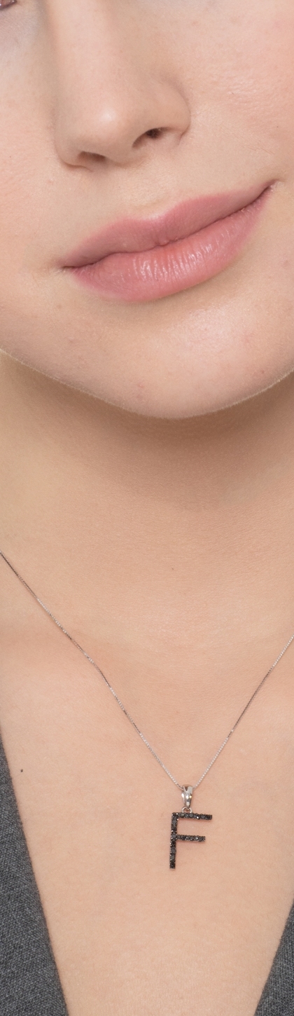 Collier or 18k avec pendentif lettre F serti en diamants noirs