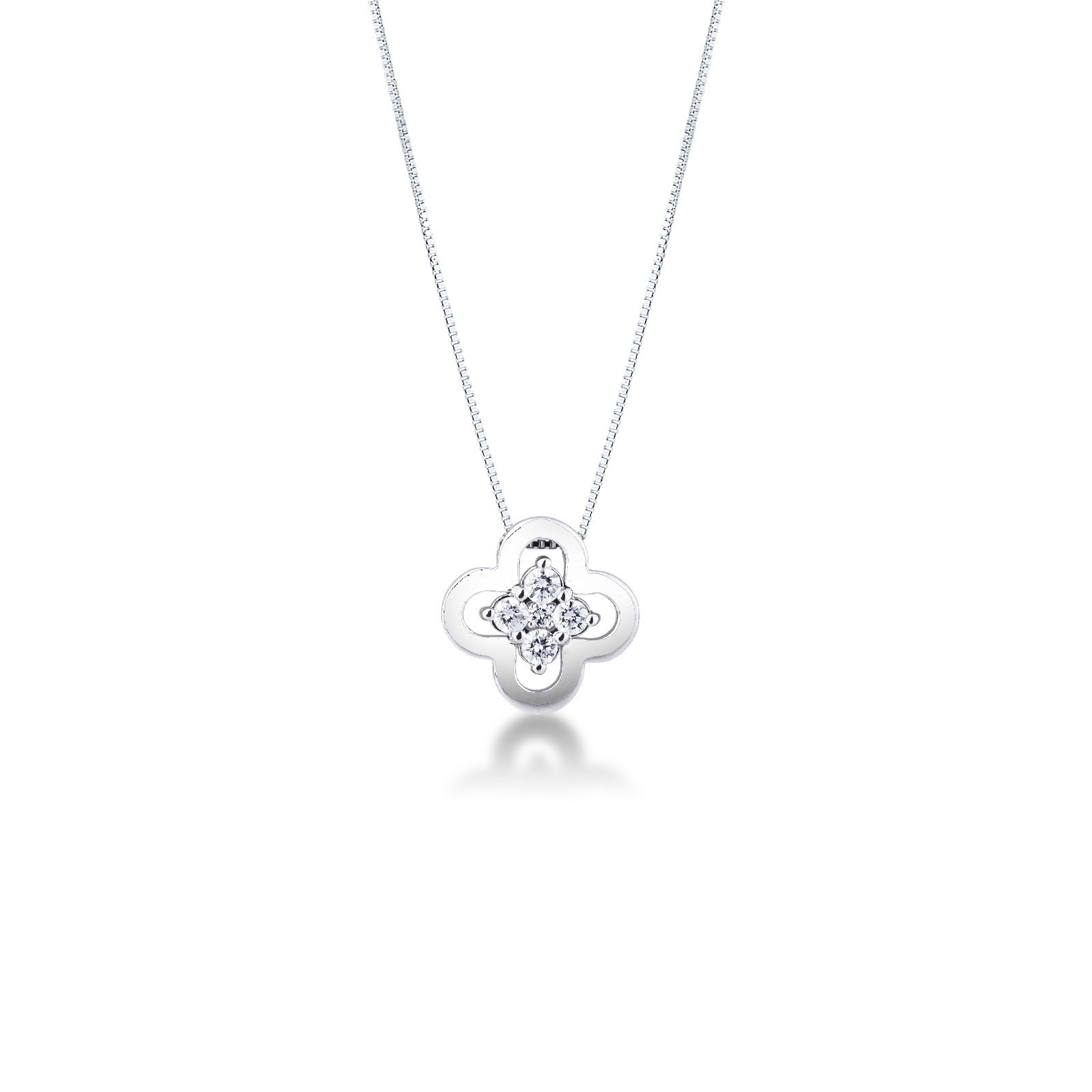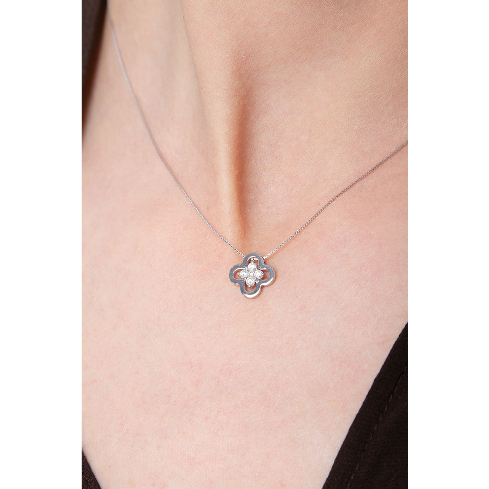 Collier Or Blanc 18k avec diamants et croix