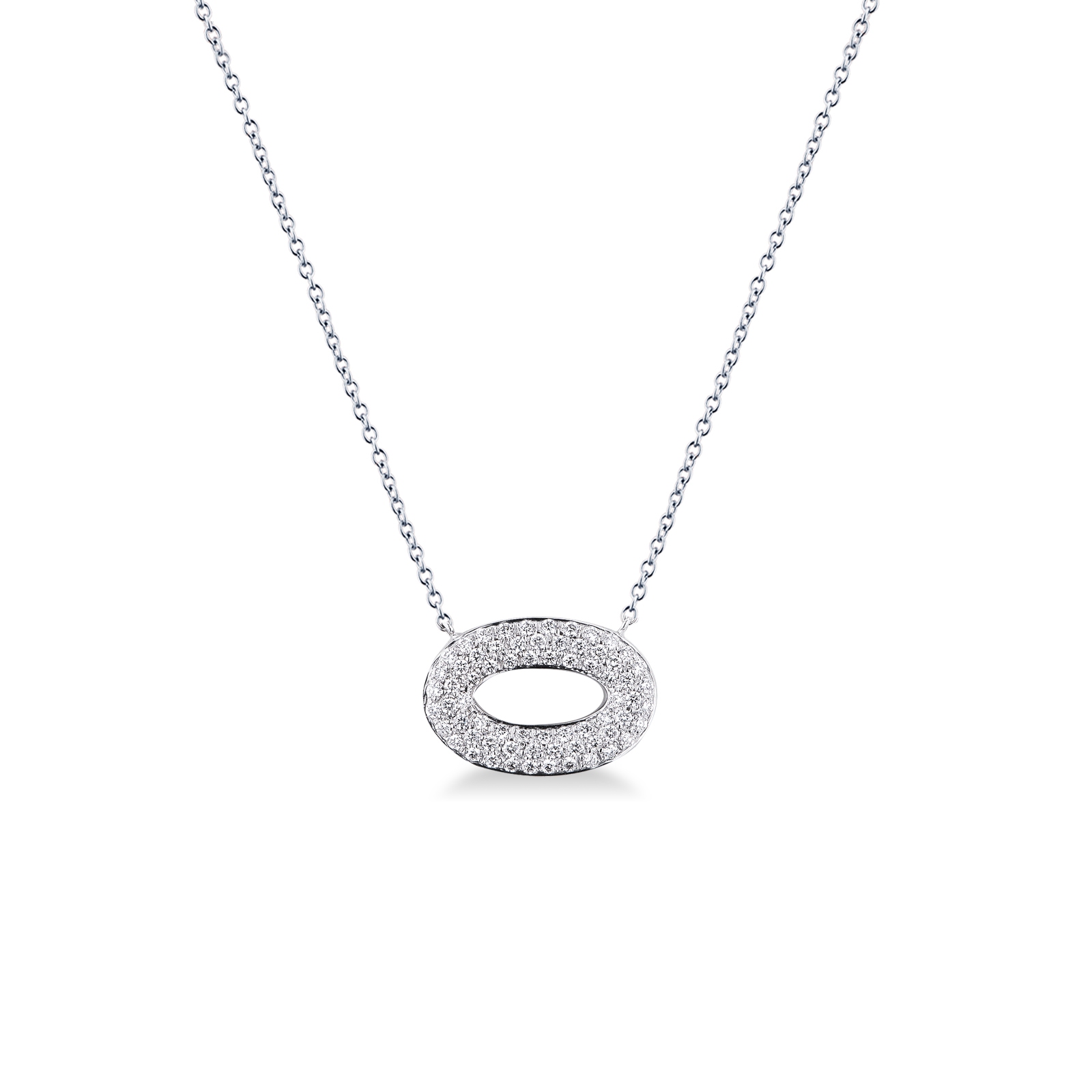 Collier or blanc 18k avec pendentif ovale pavé diamants