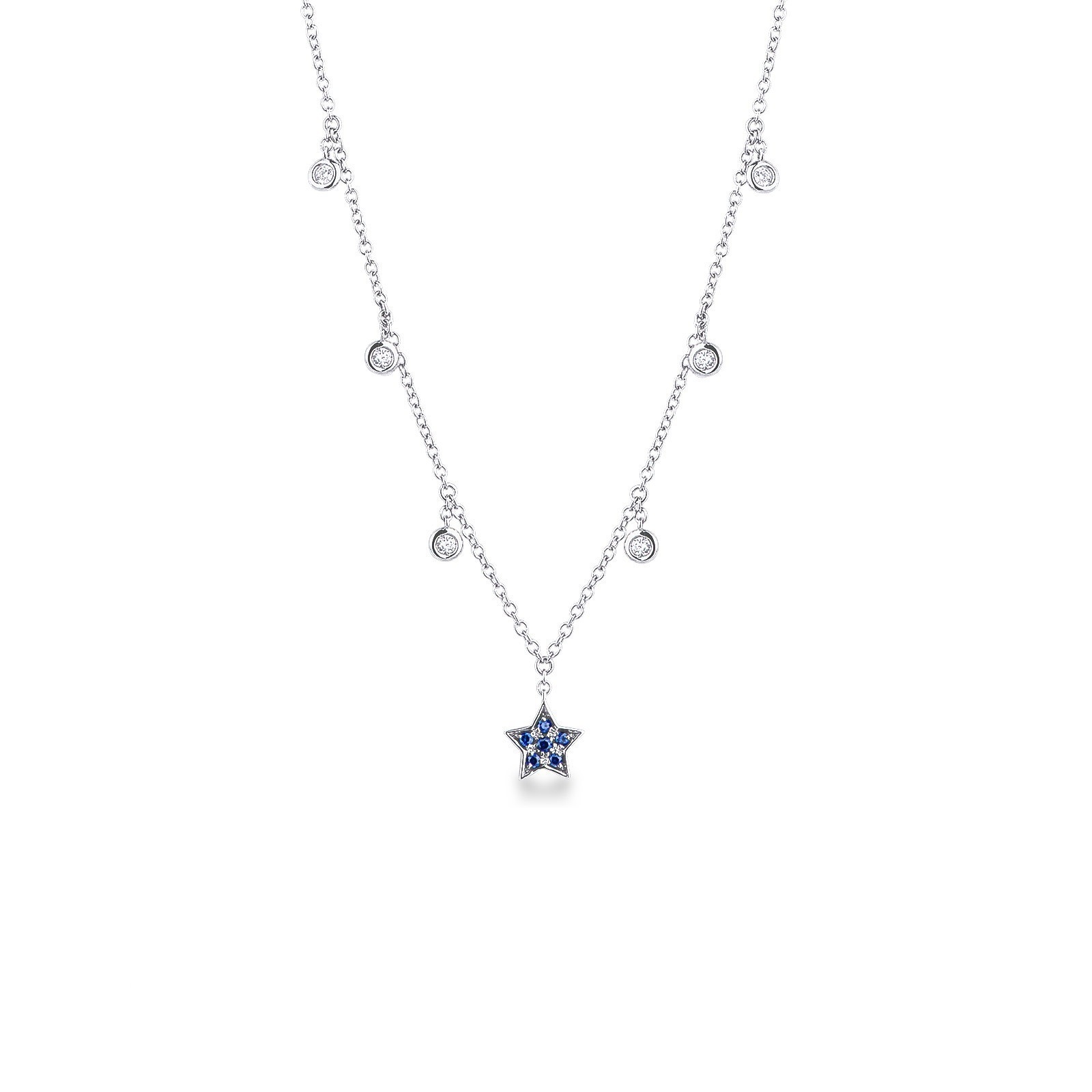 Collier Or Blanc 18k avec saphirs et diamants sur étoile
