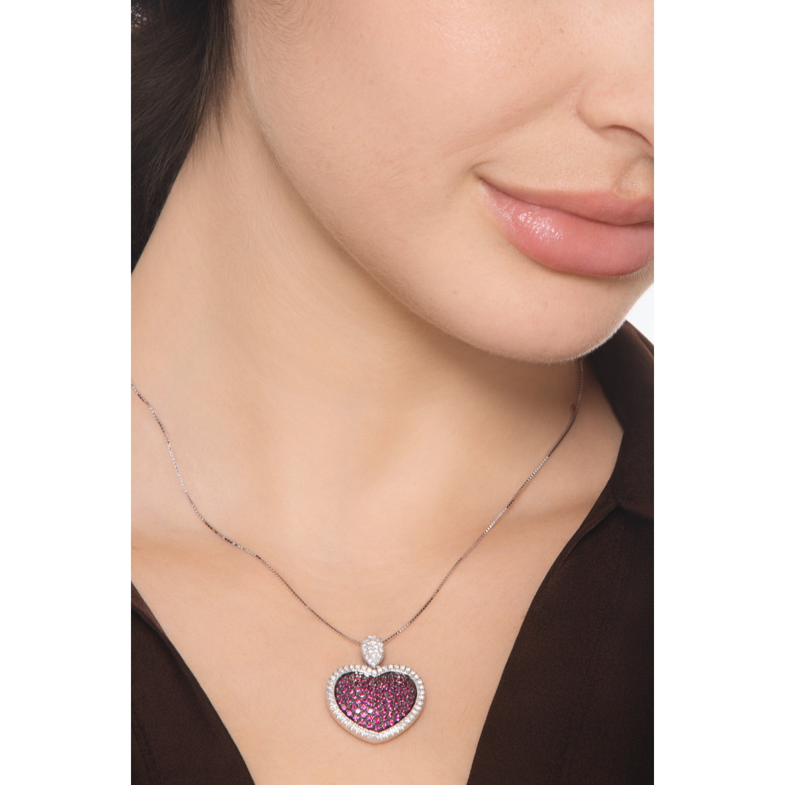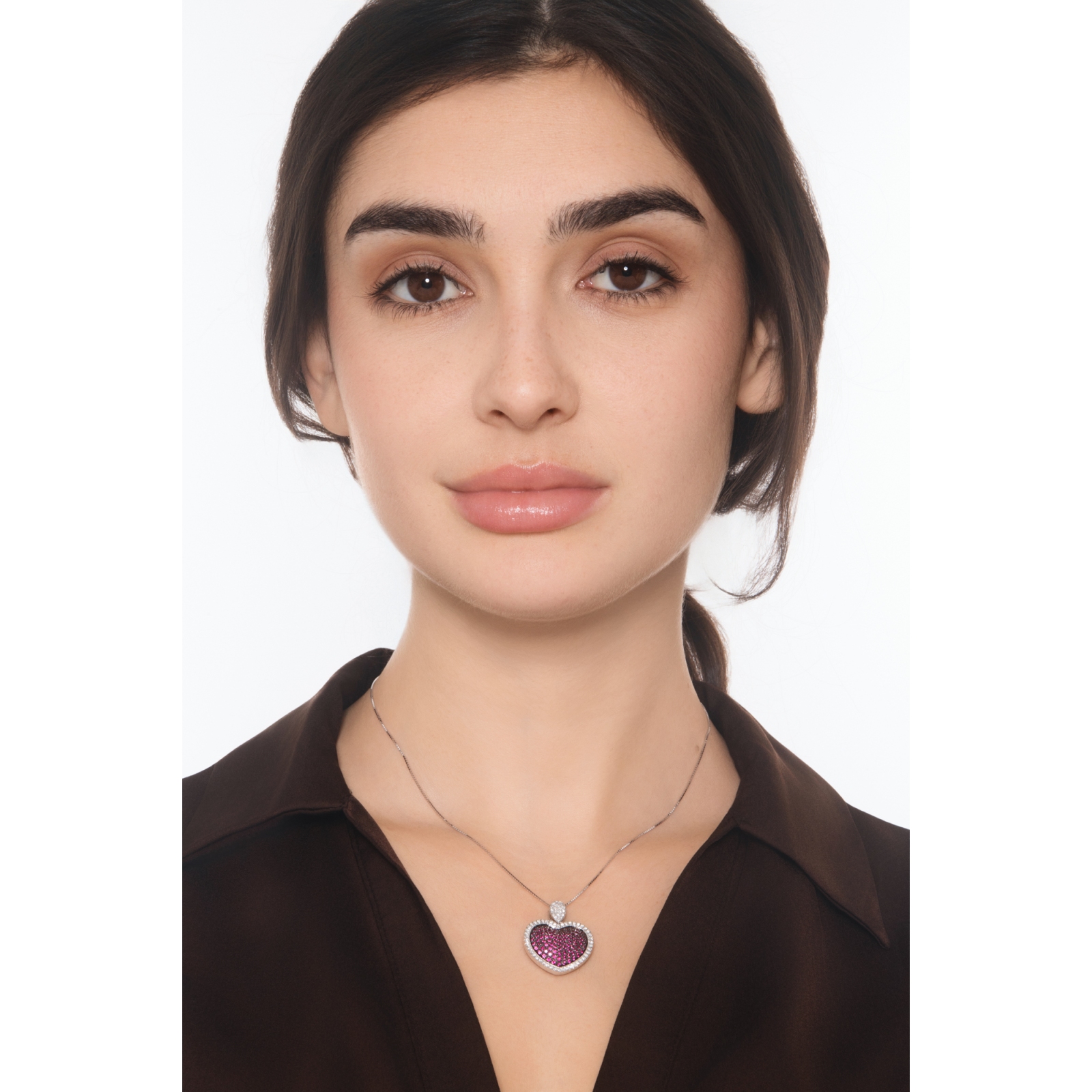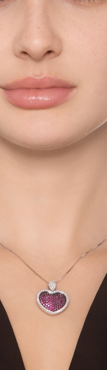 Collier Pendentif Cœur Rubis & Diamants Or Blanc 18k