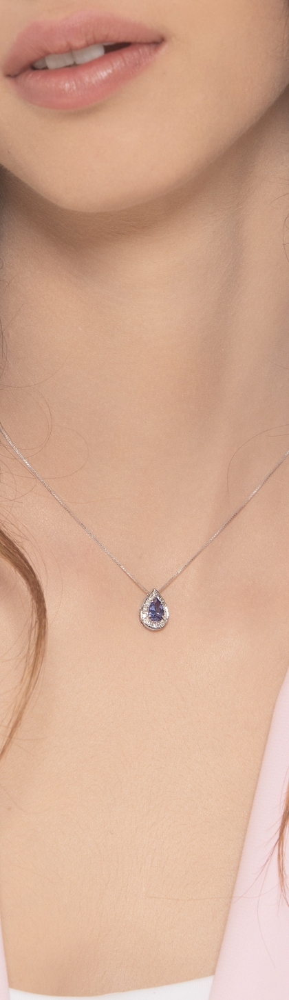 Collier pendentif en or blanc 18 carats tanzanite
