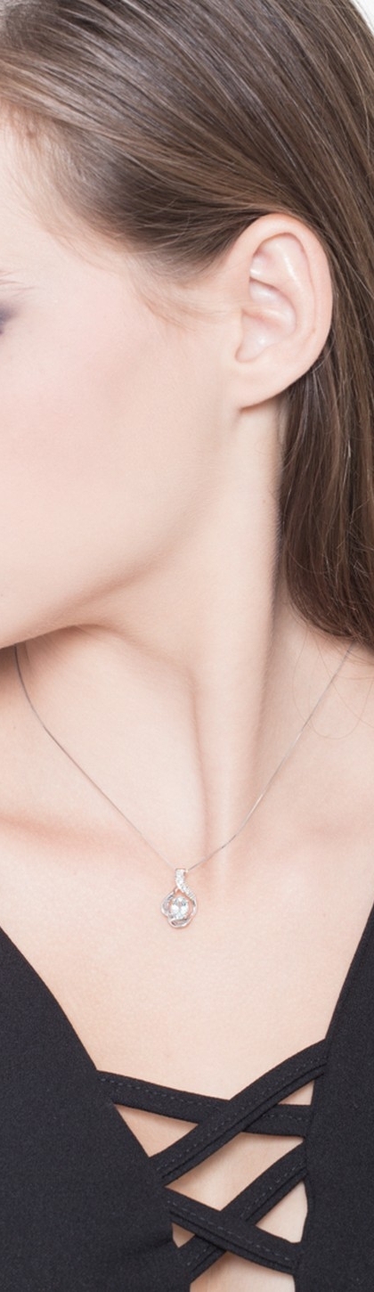 Collier pendentif en or blanc 18k aigue-marine ovale et diamants