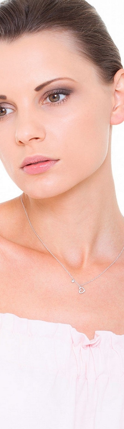 Collier pendentif en or blanc 18k et diamants à cœur