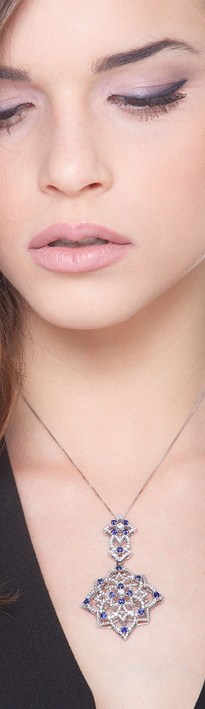 Collier pendentif en or blanc avec saphirs et diamants
