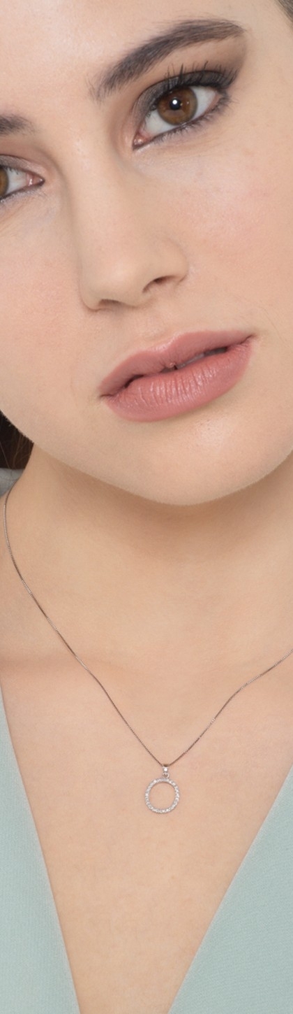 Collier pendentif lettre O en or blanc 18K et diamants