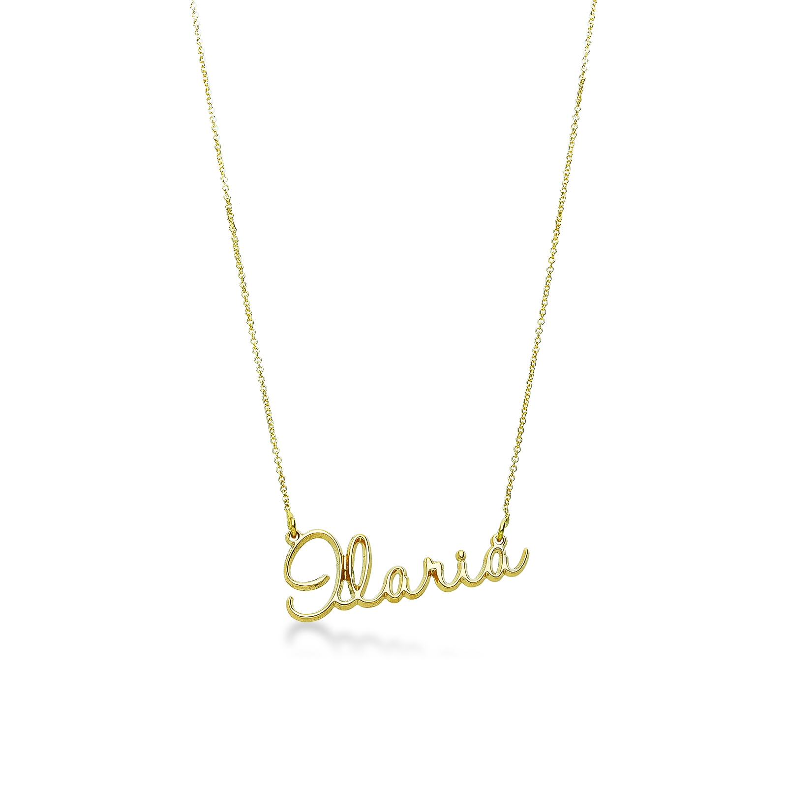 Collier personnalisable avec prenom en cursive stylisee en or jaune 18k