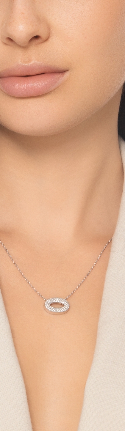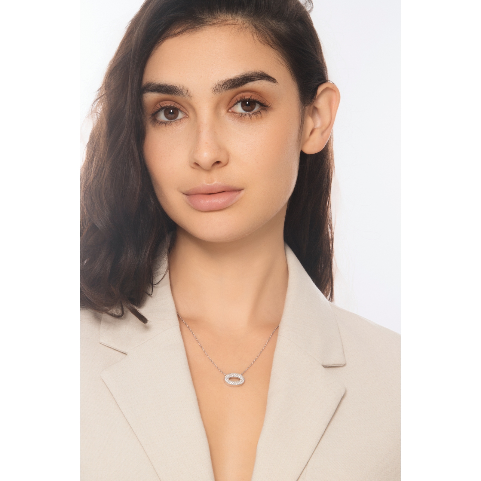 Collier ras du cou avec ovale en or blanc 18 carats et diamants