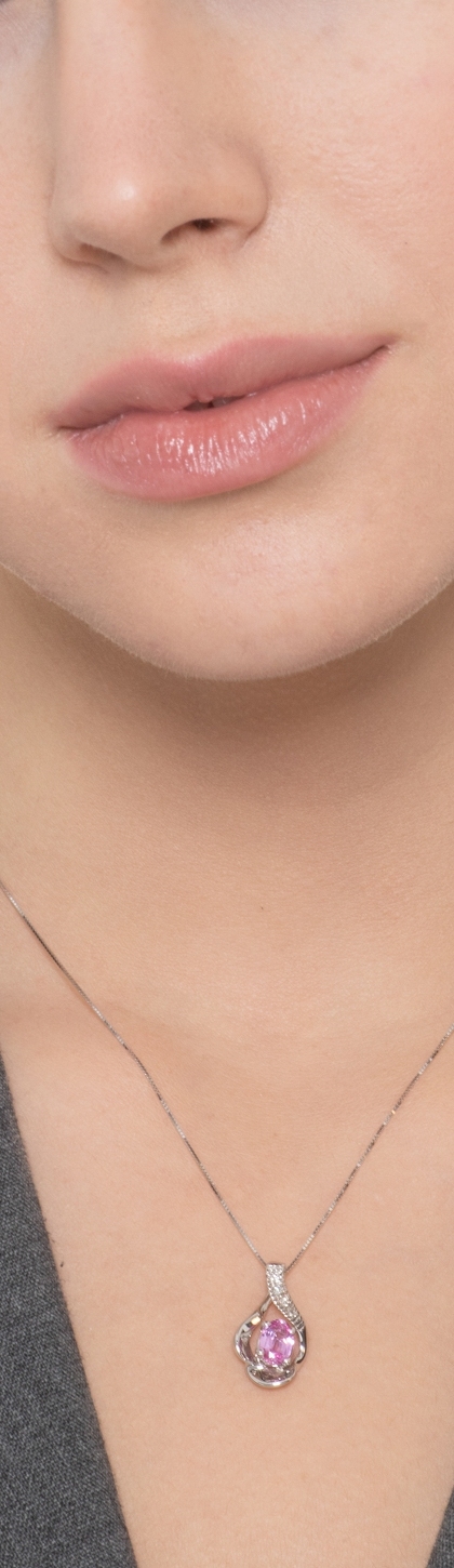 Collier Saphir Rose 7x5 mm & Diamants Or Blanc 18k