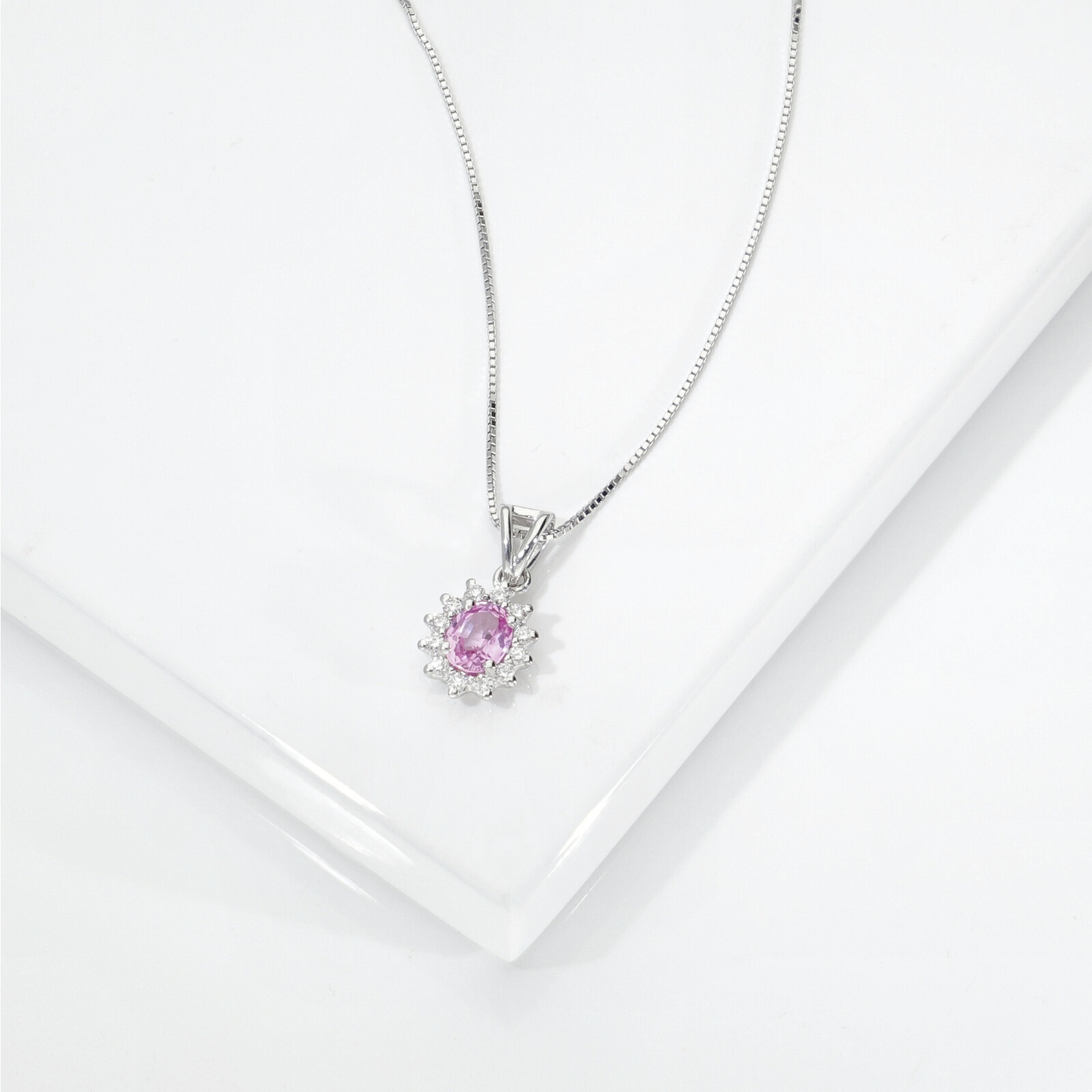 Collier Saphir Rose Ovale Diamants Or Blanc