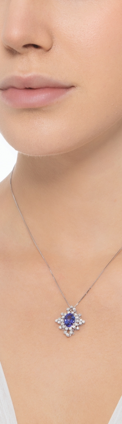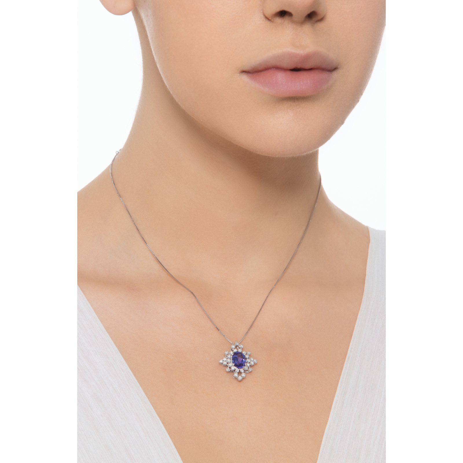 Collier Tanzanite Ovale & Diamants Halo Or Blanc 18k