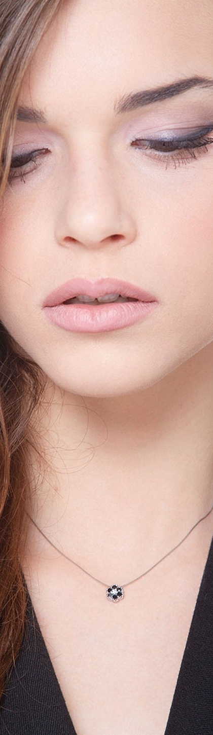 Pendentif en or blanc 18k avec fleur en diamants noirs et blancs