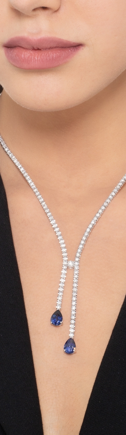 Collier tennis en or blanc 18k avec diamants et saphirs bleus