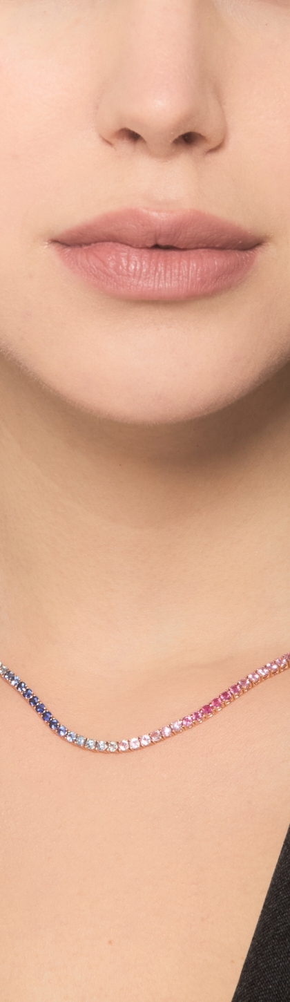 Rivière tennis en or rose 18k sertie de saphirs multicolor
