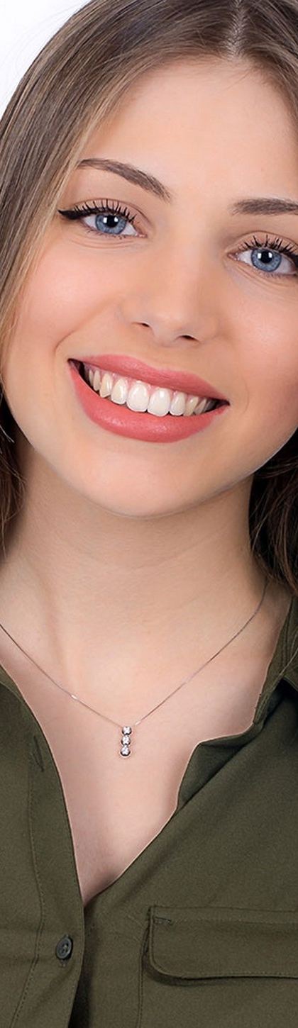 Collier or blanc 18k avec pendentif trilogy diamants 0.12 ct